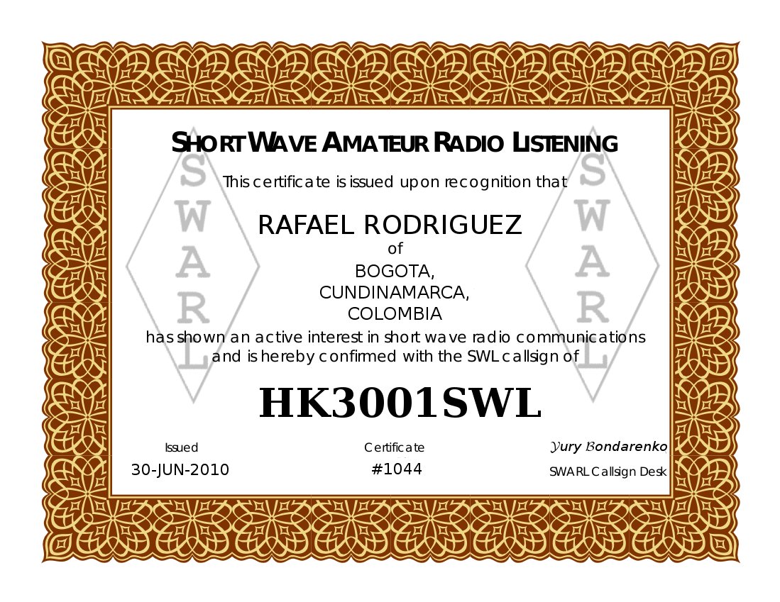 一號機 發表於 2013-11-18 14:24 我不知道現在總會還有沒有在發放SWL的證~但我想您可以去電南分會或總會研究一下, 剛剛說到某些國家有~某 ...